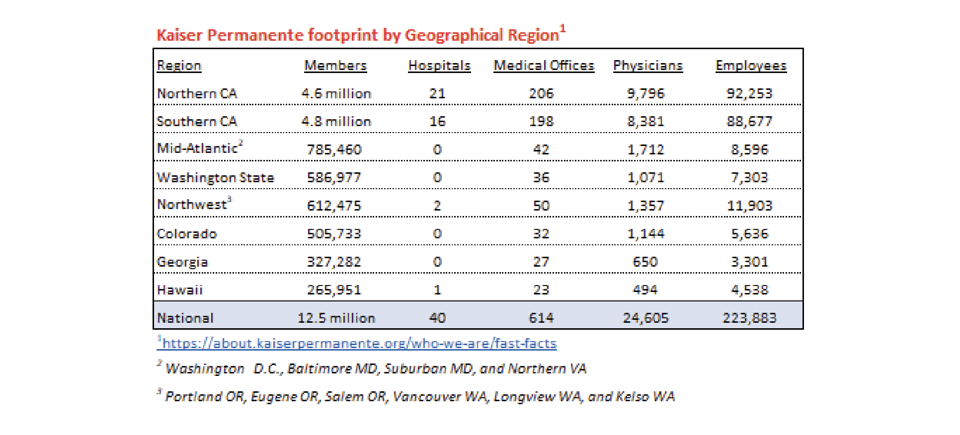 If high denial rates are a critical issue that is preventing and delaying healthcare services, then Kaiser’s care delivery model may be a potential solution. It’s unfortunate, however, that Kaiser has a very small footprint outside of California (see chart below). Kaiser has 9.4 million members in California (nearly 25% of the population) but only 3.1 million across all other states (about 1% of the population) and only three hospitals outside of California.